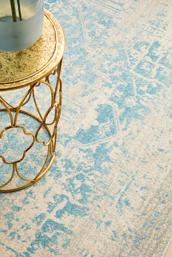 Transcend the winter ambiance with this one of a kind range from the famous Evoke collection. The Evoke Glacier White Blue pile is a magnificent fusion of fashion-forward style and plush texture, it features a magical emblem center with ornamental surround on azure and off-white context. Using the latest technology on power looming construction, made from the finest polypropylene and soft yarns, exposed the beauty of any room context with unique style and flair.