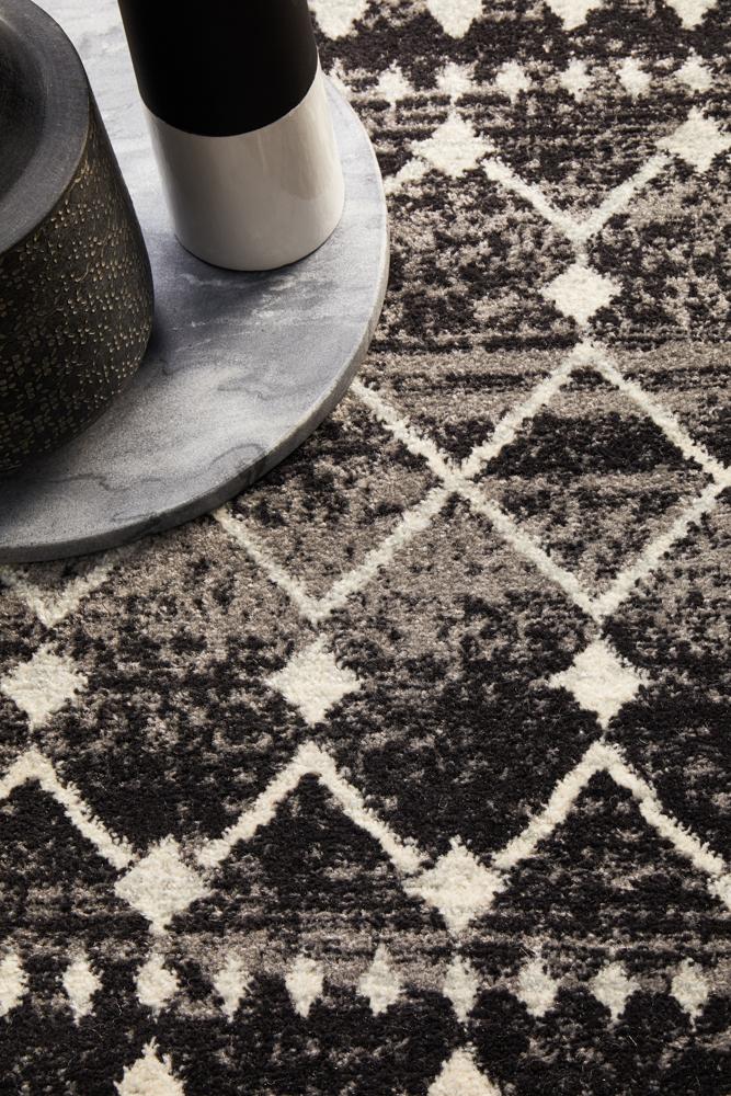 They say simplicity is beauty, it does not apply to us but also to modern day rugs. The Evoke Simplicity Black Transitional rugs lend a traditional charm to your ensemble with a Persian-inspired motif in hues of black and white. It presents multiple displays of geometric patterns, trellis design and serrated motif on a dark tone hue. Made in Turkey, this one is constructed from polypropylene, a popular material in rug production due to its high resistance to stains, fading, and moisture.