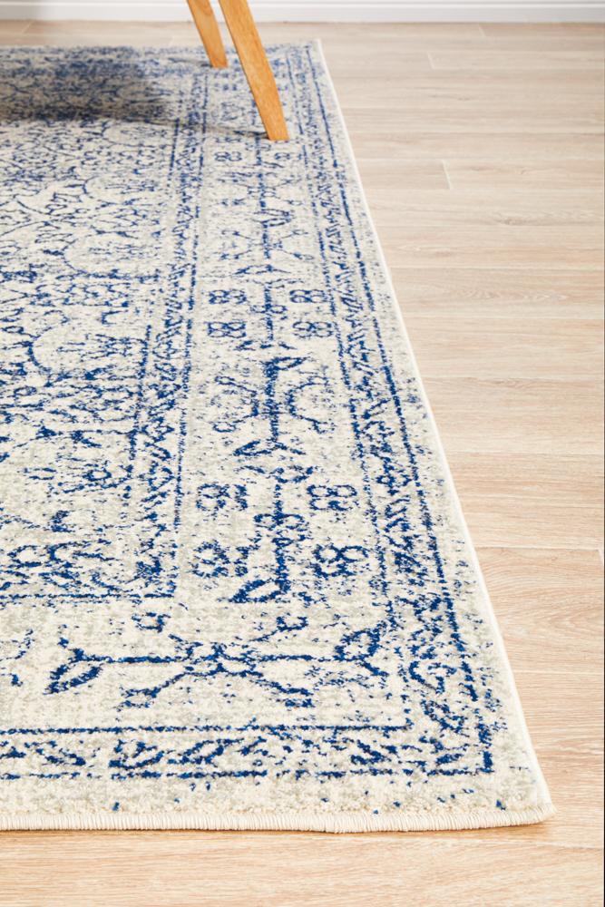 This elegant set from the Evoke Whisper range features a traditional design heavy on floral and arabesque laid on an off white, aqua and grey toned scheme mixed finishing textures which complements a contemporary set up to any point or setting. The Evoke Whisper White range presents a Persian influence piece made from 100% polypropylene material, one is assured that it is highly resistant to stain, durable, easy to clean and its colors are non-fading.