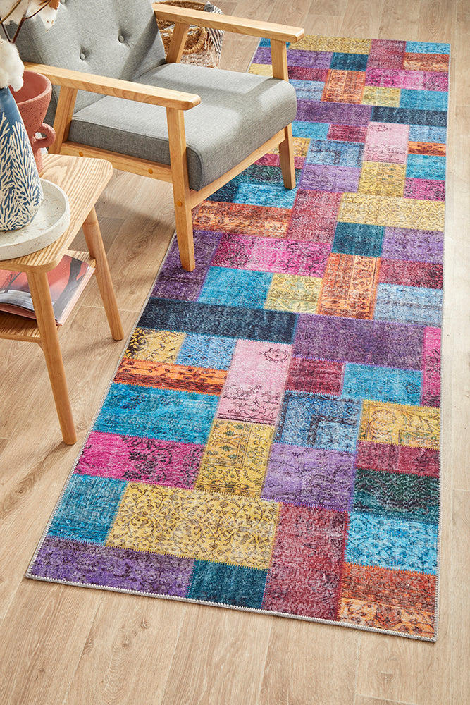 Looking for something cheerful and vibrant? Look no further, Illusions is sure to make a statement with its head-turning hues and bold printed patchwork design. Bursting with character and flare, this vintage inspired design would pair wonderfully in a bohemian, contemporary, or tribal inspired interior.
