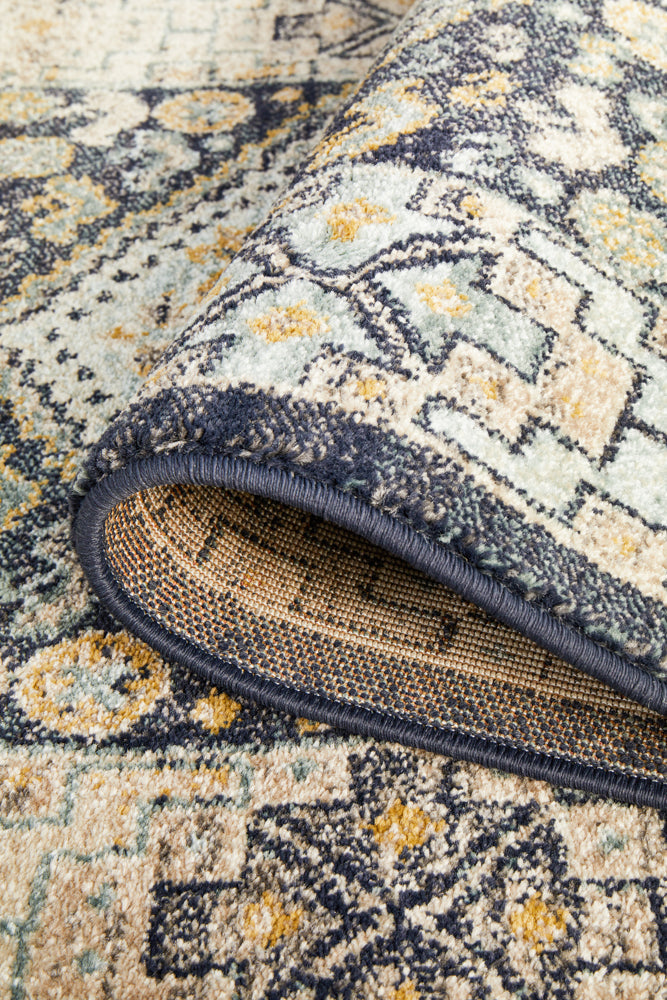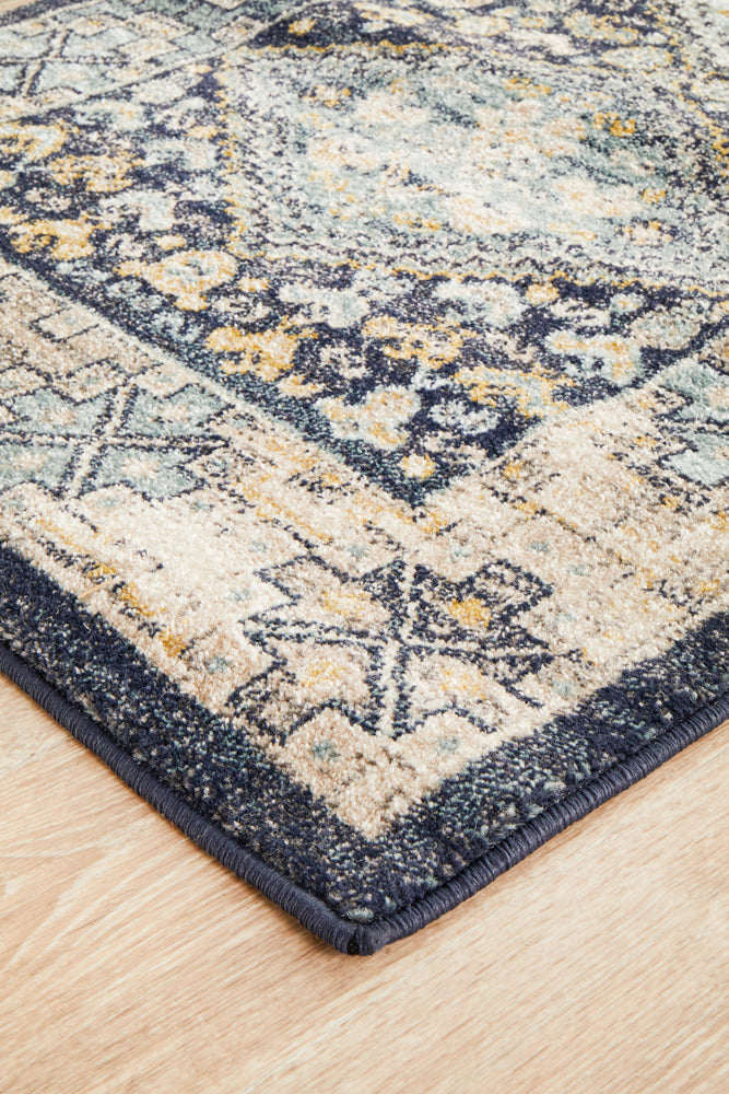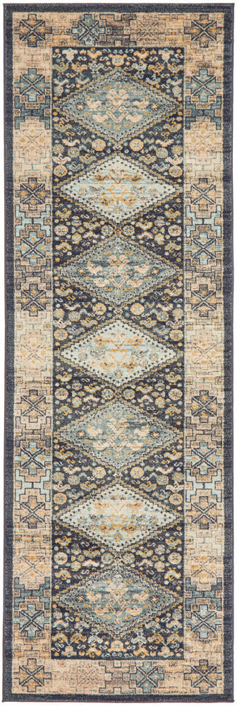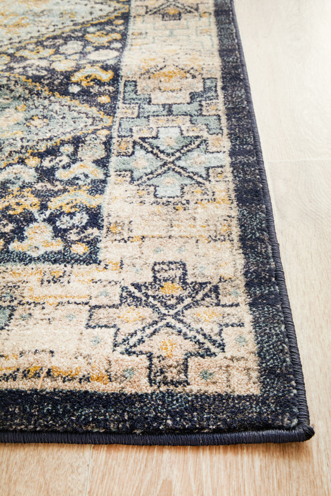 Bring out the beauty and elegance with a touch of global inspiration with this head turning, eye catching pile. The Legacy Navy Runner Rug made from quality polypropylene materials is machine woven in Turkey. It showcases an intertwining diamond scheme laid in a dark hue context, with duly imposed serge edges of interloping black and navy yarns adding more value and durability to the product. Definitely high chic and can withstand well-traveled areas.