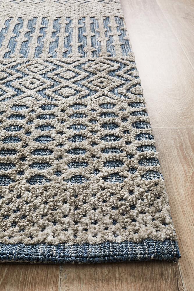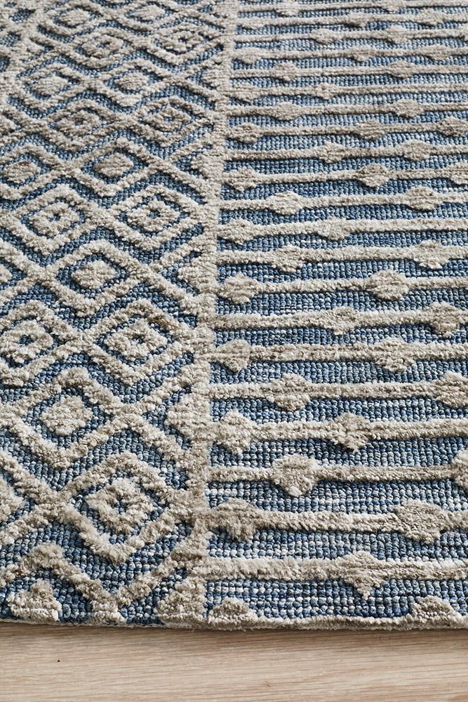 A treat to the eyes and to the foot, this luscious high pile finish rug from the Levi Corey rug collection is made from microfibre polyester, table tufted in India to withstand high traffic areas while maintaining its comfort and luxurious feel. Punctuated with a geometric and abstract linear patterns, earthly toned on gray accent context bringing in a nomadic and rustic ambiance in every home or room setting.